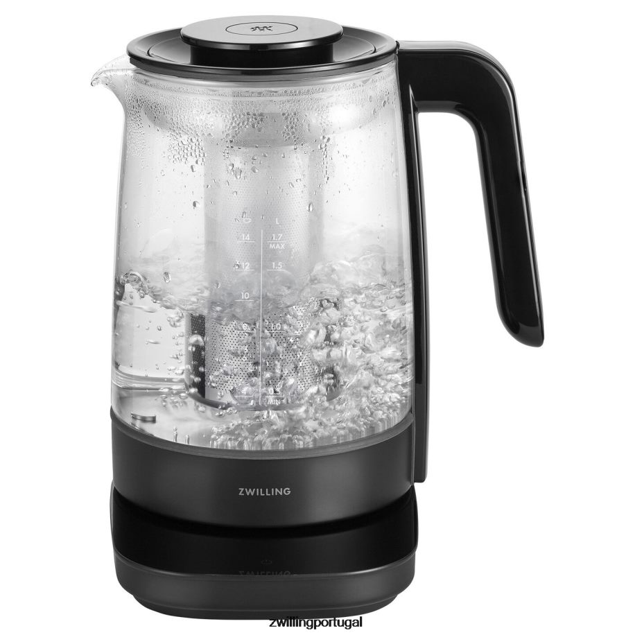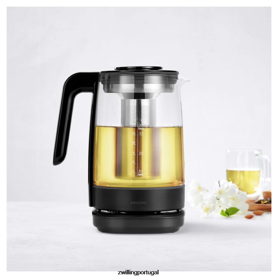 Sirva-se da xícara perfeita com nossas chaleiras elétricas. esta bela e durável chaleira de vidro de borosilicato tem uma potência de 1.500 watts e oferece uma capacidade máxima generosa de 1,7 litros. possui controle preciso de temperatura, 6 programas de temperatura predefinidos, uma função de manter aquecido de 30 minutos e um prático cronômetro de maceração de chá. o íngremedor de aço inoxidável pode ser inserido para preparar seu chá favorito diretamente na chaleira. quando removido, pode ser colocado na bandeja coletora incluída para evitar bagunça. a base de encaixe possui um prático armazenamento de cabos para um design limpo e minimalista que mantém sua bancada com uma aparência tão elegante quanto os eletrodomésticos nela.