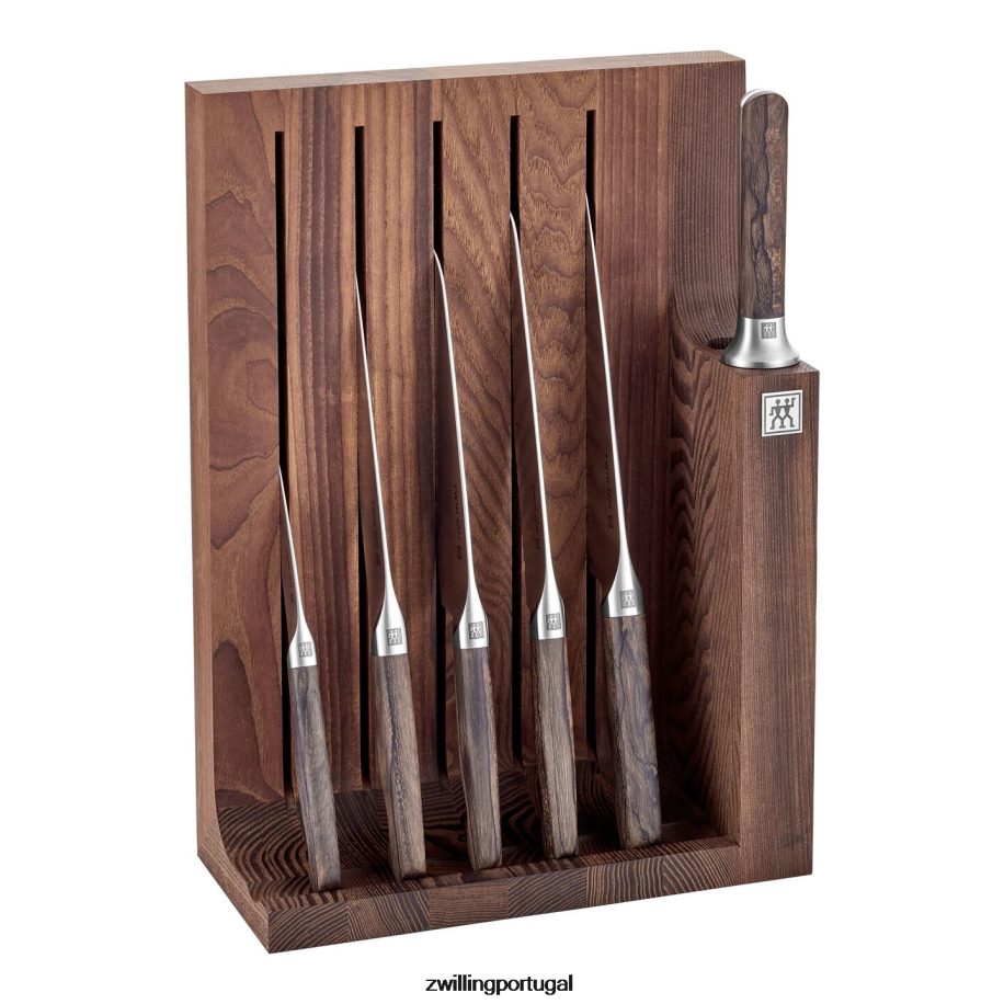 - inclui aparas de 4" e 7" santoku, pão de 8", escultura de 8", chef de 8", aço de 9", cavalete magnético block