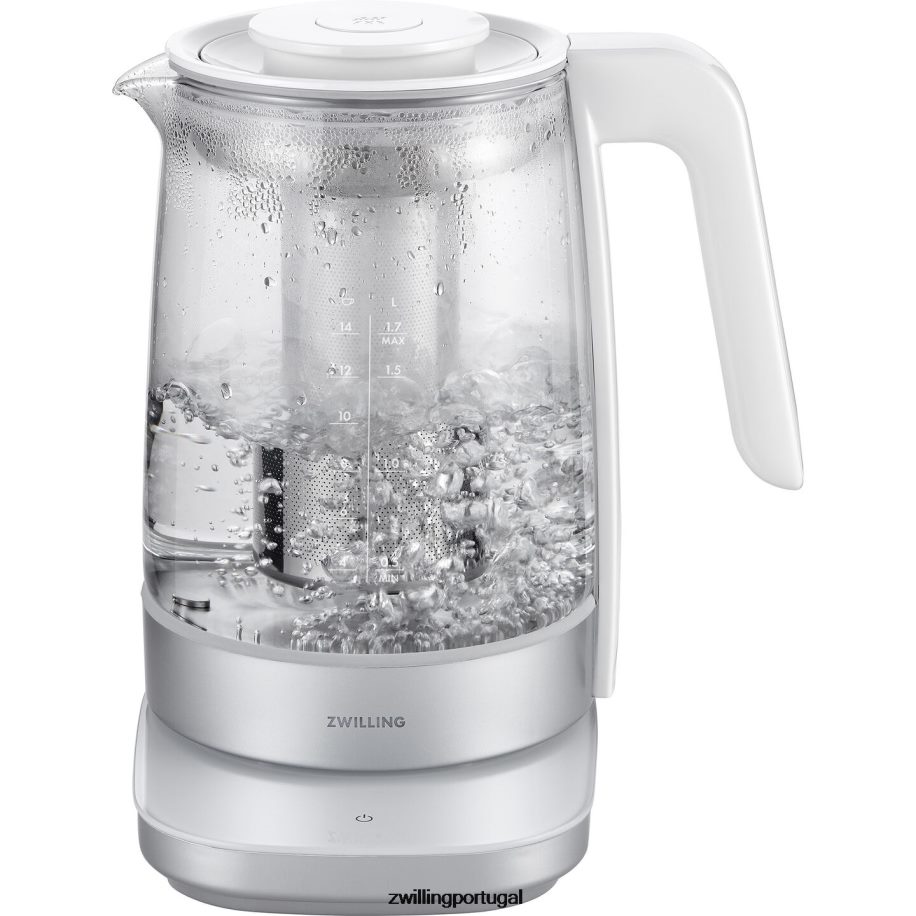 Sirva-se da xícara perfeita com nossas chaleiras elétricas. esta bela e durável chaleira de vidro de borosilicato tem uma potência de 1.500 watts e oferece uma capacidade máxima generosa de 1,7 litros. possui controle preciso de temperatura, 6 programas de temperatura predefinidos, uma função de manter aquecido de 30 minutos e um prático cronômetro de maceração de chá. o íngremedor de aço inoxidável pode ser inserido para preparar seu chá favorito diretamente na chaleira. quando removido, pode ser colocado na bandeja coletora incluída para evitar bagunça. a base de encaixe possui um prático armazenamento de cabos para um design limpo e minimalista que mantém sua bancada com uma aparência tão elegante quanto os eletrodomésticos nela.