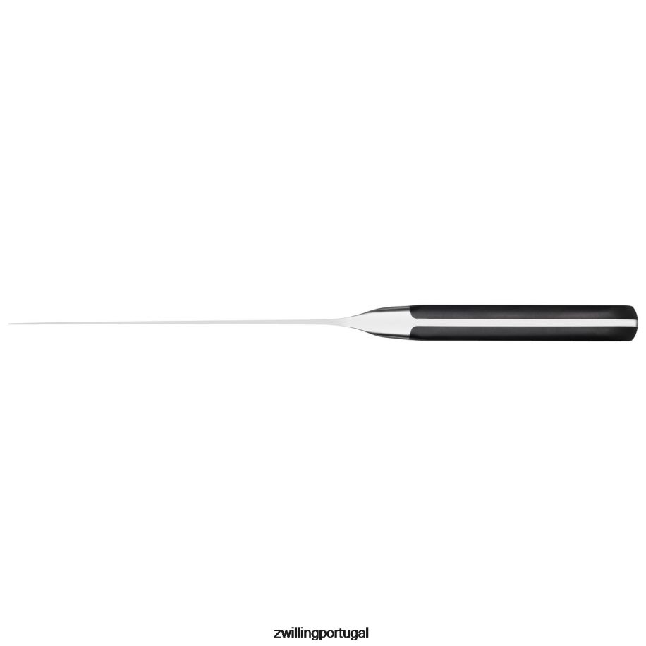 a faca do chef da série zwilling pro é uma ferramenta quase universal para a preparação conveniente de uma grande variedade de pratos. todo o comprimento da lâmina da faca de 20 cm pode ser usado para cortar. isso permite uma variedade de técnicas de corte, desde cortar carne ou peixe até picar vegetais finamente ou preparar ervas com cortes oscilantes. a faca é forjada com precisão a partir de uma única peça de aço de fórmula especial zwilling, que atende a requisitos especiais de dureza e resistência à corrosão. o formato de cunha e a borda de corte suave e finamente moída facilitam o corte limpo e preciso em alimentos duros e macios.