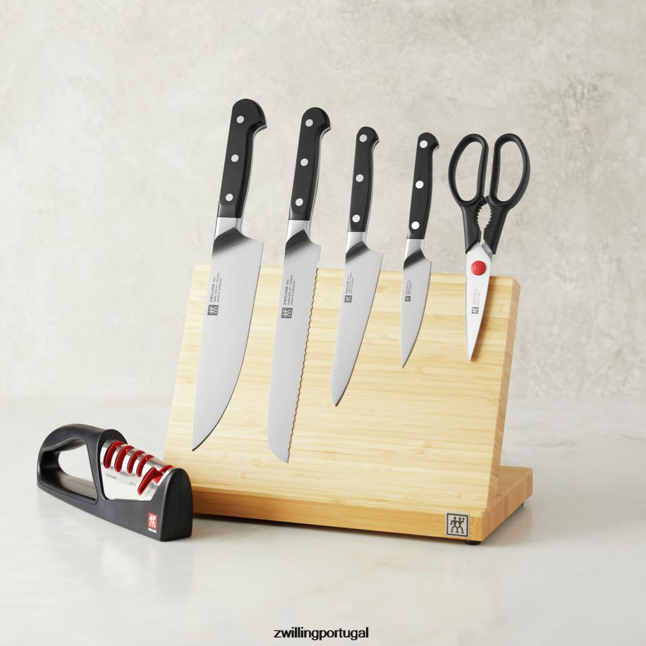 - o conjunto inclui: 4 aparas de 5,5 polegadas, preparação de 5,5 polegadas, chef de 8 polegadas, pão de 8 polegadas, tesoura de cozinha, apontador de 4 estágios com apontador de cisalhamento, cavalete magnético de bambu